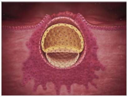 Implantation is the point at which the earliest stage of the new child, the blastocyst, embeds itself into the wall of the uterus. This is the stage with which this writing is largely concerned because it is at this stage that hormonal birth control containing the progesterone hormones may cause a chemical abortion. (See the figure below)